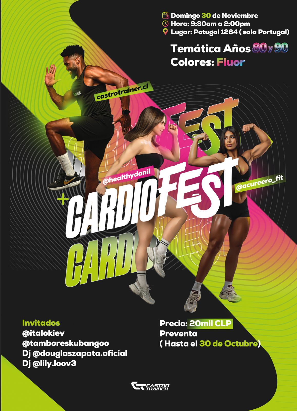Inscríbete ahora Quiero ser marca aliadaCARDIO FEST es más que un evento fitness: es una experiencia que mezcla ejercicio, música y baile en un ambiente vibrante que recarga cuerpo y mente.